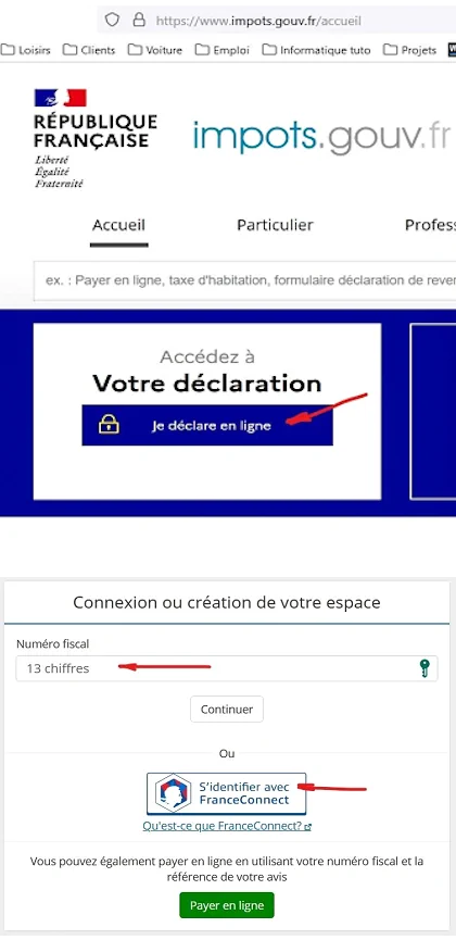 Connexion via FranceConnect ou avec votre numéro fiscal et mot de passe.